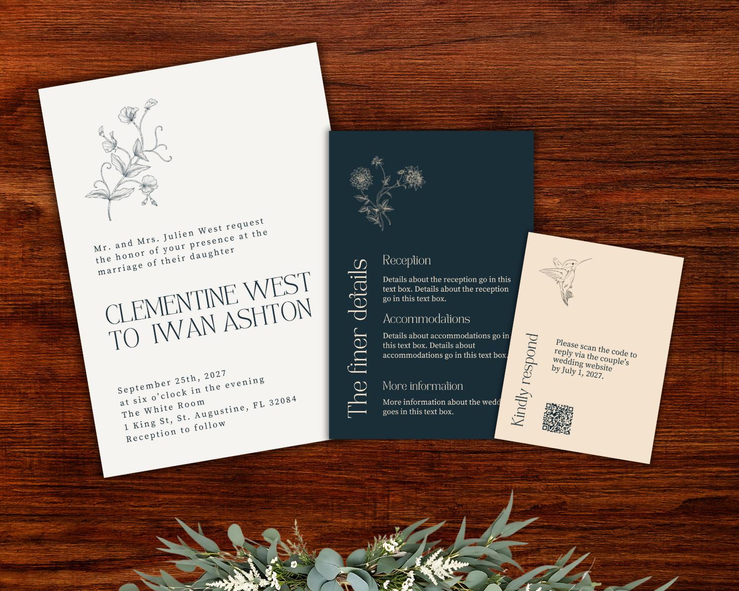 Every stationery order is unique, which means pricing can vary depending on your vision. My pricing reflects both the base printing costs and the time and care that goes into design, revisions, communication, assembly, and shipping. This ensures not only that your stationery is beautifully produced, but also that your designer is fairly compensated for the detail and craft behind each piece.
